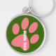 Para uma Mãe de Cachorro ou qualquer pessoa que queira reivindicar seu território, deixe sua marca com este design original, um porta-chaves com impressão de pata rosa. A simples impressão rosa, uma pata de cachorro, repousa sobre um fundo verde grama. O texto diz "MÃE DE CACHORRO", mas pode ser alterado para o nome do seu melhor amigo, ou excluído se preferir. A cor do fundo pode ser alterada para se adequar ao território.