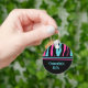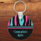 Uma corrente de chave bonito em um padrão de listras de zebra em preto, turquesa e rosa quente. Adicione seu nome a ele.