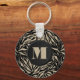 Um chaveiro de na moda apresenta seu monograma inicial em um padrão de impressão em animais pretos e bronzeados. Crie ou dê como presente. CORRESPONDENDO a itens na nossa loja.
