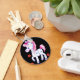 Um Cavalo Branco com Pontos Azuis e uma Mana Rosa se apresenta feliz e um sorriso grande em seu rosto fofo.