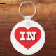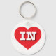 Esta cadeia-chave apresenta um coração vermelho vibrante contendo as letras maiúsculas, brancas e em negrito IN, a abreviação oficial para Indiana, o estado de hospedeiro.