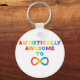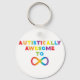 Design feito com amor pela Consciência Autista. As letras arco-íris formam a frase "Autisticamente Infinito" com um símbolo infinito.