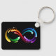 Symbol of infinity is artistically painted with fast moving, bright, luminous, rainbow colored comets with long flexible tails on black background. Rainbow infinity.