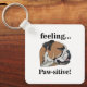 Cachorro Inglês Sentindo Cachorro Pawsitivo chaveiro design original de Nisha Prabhu. Celebre seu amor por cachorros com o encantador Chaveiro do cão Dog Lover do Zazzle, "Inglês Bulldog Sentindo-se Pawsitive"! Apresentando um adorável design de um Bulldog Inglês com uma atitude penosa, este chaveiro é o acessório perfeito para manter suas chaves organizadas e adicionar um toque de diversão à sua rotina diária. Seja você um dono de cachorro orgulhoso ou procurando um presente delicioso para um companheiro de estimação, esta chaveiro certamente trará sorrisos e vibrações positivas aonde quer que você vá!