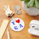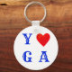 Pingente de ioga elegante. Texto de ioga azul com coração substituindo a letra o. Quando fazemos ioga, a Divindade está em ação!
