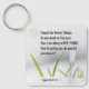 Chaveiro com uma escritura de citação inspiradora retrata uma fotografia natural simples com uma flor de primavera Crocus que rebenta pela neve do inverno. Ele apresenta uma Bíblia encorajadora Verse Isaiah 43:18-19, "Esqueça as coisas antigas; não concentre-se no passado. Estou fazendo uma COISA NOVA! Agora ele se primavera; você não a percebe?"