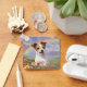 Um chaveiro personalizado do memorial Jack Russell Terrier com uma pintura de um feliz Jack Russell Terrier em uma colina celestial serena com um belo arco-íris e uma borboleta colorida balançando. Simbolizando o Jack Russell Terrier passou a ponte do arco-íris para o paraíso doggy. Personalize-o com o nome do seu próprio cão Jack Russell Terrier ou qualquer outro texto no verso da chaveiro. Faz um presente maravilhoso para qualquer amante de cães Jack Russell Terrier.