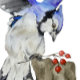 Jay azul de pássaro da floresta aquática. Este design baseia-se no meu trabalho de arte de aquarela original