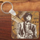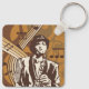 Um músico de jazz tocando trombone vestindo um chapéu. Esta design parece realmente eficaz nestes Chaveiro
