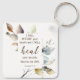 Chaveiro com uma escritura inspiradora de aspas retrata uma aquarela de outono com um ramo de folhas azuis, vermelhas, lavandas e verdes em um simples design moderno. Ele apresenta uma Bíblia encorajadora Verse Jeremiah 30:17, "EU VOU RESTAURAR sua saúde e vou curar suas feridas, declara o LORD."