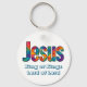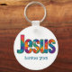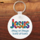 Beautiful colorful geometric design of the name of "Jesus" loves you (personalize message or scripture or name). Great gift for Christians who love the Lord and are proud to be His. This keychain perfect to give for religious celebrations, events and parties such as baptisms and summer BBQ's.