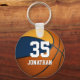 Este chaveiro de basquetebol masculino apresenta um gráfico simples de basquete com as cores da sua escola azul e dourada em dois dos painéis do basquete, e um nome de jogador facilmente personalizável e um grande número de camisa em estilo desportivo, letra de varsidade - por katz_d_zynes