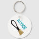 Crie um presente personalizado que é perfeito para qualquer um que ama tocar os sinos no coro da campainha. Este chaveiro apresenta uma ilustração realista do estilo de uma campainha em ouro e preto e está pronto para ser personalizado com o nome da campainha acima, em letras coloridas azuis negrito.