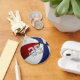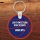 Este legal chaveiro do tema de basquete apresenta a imagem realista de uma bola de basquete que tem painéis coloridos vermelhos, brancos e azuis alternados na frente e uma simples forma azul de basquete no verso - personalize facilmente com o nome do jogador & número de camisa na frente e na escola ou nome do clube e nome do mascote no verso - por katz_d_zynes