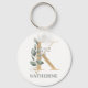 Florial do monograma da letra K. A letra K na textura marrom-ouro acentua-se com folhas e bagas compostas de cor aquosa verde e pó de ouro. Personalizado com o nome na fonte correspondente.