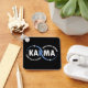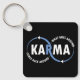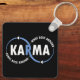 Karma - O que acontece volta ao Chaveiro (v1). O design artístico exibe a palavra "KARMA" em dois círculos sem fim com "O QUE VAI POR AÍ" e "VOLTA POR AÍ" curvos para formar seções dos círculos. As duas cores podem ser alteradas para sua preferência desejada editando o design. Faz o presente perfeito para aqueles que acreditam em Karma e em tratar bem os outros. Obrigado pelo apoio e pela visita à minha loja - UniquelyDistinct. Sinta-se livre para transferir este design em outros produtos do Zazzle.