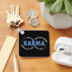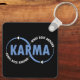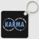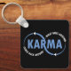 Karma - O que acontece volta ao Chaveiro (v2). O design artístico exibe a palavra "KARMA" em dois círculos sem fim com "O QUE VAI POR AÍ" e "VOLTA POR AÍ" curvos para formar seções dos círculos. As duas cores podem ser alteradas para sua preferência desejada editando o design. Faz o presente perfeito para aqueles que acreditam em Karma e em tratar bem os outros. Obrigado pelo apoio e pela visita à minha loja - UniquelyDistinct. Sinta-se livre para transferir este design em outros produtos do Zazzle.
