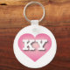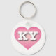 Esta cadeia-chave apresenta um coração calmo, legal e colecionado cor-de-rosa com um centro lavado em branco contendo as letras negrito, branca, maiúsculas KY, a abreviação oficial para Kentucky, o estado bluegrass.