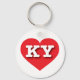 Esta cadeia-chave apresenta um coração vermelho vibrante contendo as letras maiúsculas, brancas e em negrito KY, a abreviação oficial para o estado de Kentucky, o estado de bluegrass.