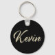 Ein sehr schöner edler personalisierter Button Schlüsselanhänger im whitegold Lettering Look auf schwarz für Kevin.