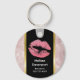 Chaveiro personalizado com fundo composto por um padrão moderno de folhas tropicais rosa-de-ouro. A camada superior é uma estrutura preta com borda de gradiente dourada, dentro são lábios brilhantes cor-de-rosa.
