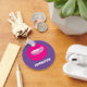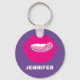 Crie um chaveiro personalizado divertido que seja perfeito para aquele especial. Apresenta uma ilustração de lábios magenta brilhantes com uma língua cor-de-rosa a lamber contra um fundo roxo. Seu nome ou outra mensagem aparece abaixo.