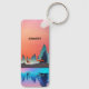 Uma corrente-chave com uma bela design gráfica com um lago pacífico com veados. E pinheiros altos sendo refletidos na água. Estrelas sobrepõem-se.