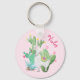 Chaveiro Lama branca e Cactus w Flores - Pastel rosa