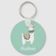 Chaveiro monograma com uma lama branca e bonita sobre fundo verde-menta. Personalize adicionando seu nome em uma fonte de script fofinha.