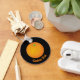 Uma laranja inteira. Cor de fundo personalizada. Texto personalizado de ambos os lados.
