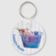 Mantenha a chave da sala de lavanderia em uma corrente de chave divertida desenhada com uma fotografia de um cheio azul de roupas dobradas coloridas em cabides e uma garrafa de detergente à frente de madeira branca rústica. Personalize o texto, remova o texto ou clique em personalizar para selecionar um estilo de fonte, tamanho e cor preferidos.