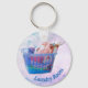 Mantenha a chave da sala de lavanderia sobre uma chave divertida desenhada com uma fotografia de um cheio azul de roupas dobradas coloridas em cabides e uma garrafa de detergente. Personalize o texto, remova o texto ou clique em personalizar para selecionar um estilo de fonte, tamanho e cor preferidos.