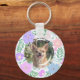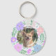Designed with a lavender floral ring, this keychain beautifully showcases your Chihuahua. Customize the silhouette side with your pet's name for a unique keepsake. A custom photo on the back makes it a heartfelt gift for any dog lover. Perfect for dog moms, pet lovers, and everyday use. The pastel palette gives it a clean, modern finish.