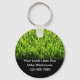 Promotional Lawn Service keychains in a simple layout with three lines for your business name, your name, and your contact number with a green grass lawn graphic in the background. Use these to promote your business with a practical hand out your clients can use for a key holder for house or car keys. A budget friendly way to spread the word about your services.