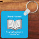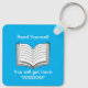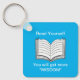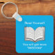 Leia seu chaveiro de citação inspiracional. Ilustração do vetor de livro aberto preto e branco com uma citação inspiradora ''Leia-se a si mesmo. Você terá mais WISDOM.'' Totalmente Personalizável. Personalize com sua própria citação.