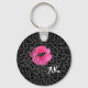 Um chaveiro básico preto e cor-de-rosa moderno que apresenta um impressão de beijo de luz rosa-quente contra um fundo de impressão leopardo preto. Personalize esta design de menina adicionando as iniciais do seu monograma.