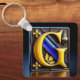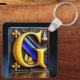 Letras em amarelo e azul com contornos metálicos e flúres de lis e decor de folhas de mapeamento