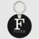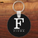 Nome preto e branco moderno, chaveiro inicial de letra monográfica. Cadeias personalizadas para ele ou para ela. Personalize com F ou outra letra.
