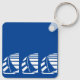 Um porta-chaves personalizável de praia, piscina ou doca com letras art déco e um padrão de barcos à vela brancos navegando pelas ondas do oceano ventosas, em um fundo azul profundo.
