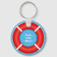 Design de reserva de vida vermelha sobre fundo de onda azul-curley para personalizar para diversão produtos de festa náutica personalizada.