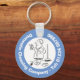 A ilustração divertida de desenhos de limpeza doméstica mostra uma senhora com equipamento de limpeza. Personalize-o com seu nome comercial e número de contato. Anel de chave ideal para uma empresa de limpeza ou de limpeza.