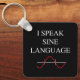 Um design de texto divertido com uma pequena brincadeira de palavras para nerd de matemática. Este lê 'Eu Falo Língua senoidal' acima de uma onda senoidal vermelha em linhas simples de gráficos.
