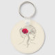 Chaveiro Linha contínua de mulher com Rosa vermelha no cabe