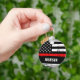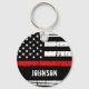 Chaveiro da linha vermelha fina personalizada - bandeira americana em cores de bandeira de bombeiro, design angustiado. Personalize com o nome do bombeiro ou departamento. Este chaveiro de bombeiros personalizado é perfeito para os departamentos de bombeiros, ou como um guardião memorial. COPYRIGHT © 2020 Judy Burrows, Black Dog Art - Todos Os Direitos Reservados. Bombeiro Personalizado - chaveiro de linha vermelha fina