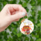 Uma pequena coruja de vassoura alegre senta-se num galho rodeado por flores, folhas e ramos. Este pequeno chaveiro de qualidade apresenta um impressão de uma pintura de aquarela original. Personalizável com a sua escolha de texto, tamanho e opções de estilo. Faz um presente único e ponderado.