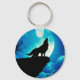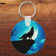 Chaveiro Lobo em silhueta uivando até a lua de cheio