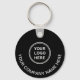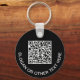 Chaveiro preto moderno para a sua empresa ou organização. Adicione seu logotipo, insira o endereço URL do seu site para criar um código QR digitalizável e adicione duas linhas de texto personalizado, como o nome da sua empresa, slogan de negócios, obrigado você, etc., em uma tipografia simples e branca.