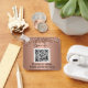 Logotipo Empresarial Código QR, profissional, rosa dourado, chaveiro personalizado de dupla face. Design simples. Perfeito para sua empresa, negócio. Chaveiros promocionais.