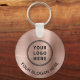 Chaveiro de promocional moderno para a sua empresa ou organização com um fundo metálico falso de rosa de ouro escovado. Adicione seu logotipo, código QR e duas linhas de texto, como nome da sua empresa, slogan, obrigado ou deixe o vazio.