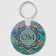 Em uma pintura azul abstrato com sombreado festivo e brilho esparso para um pano de fundo está um elegante quadro de flores de lótus preto prateado onde no centro está uma área azul onde você pode personalizá-la com um logotipo, nome, letra ou manter como está com as letras OM criando zen como vibrações pacíficas.